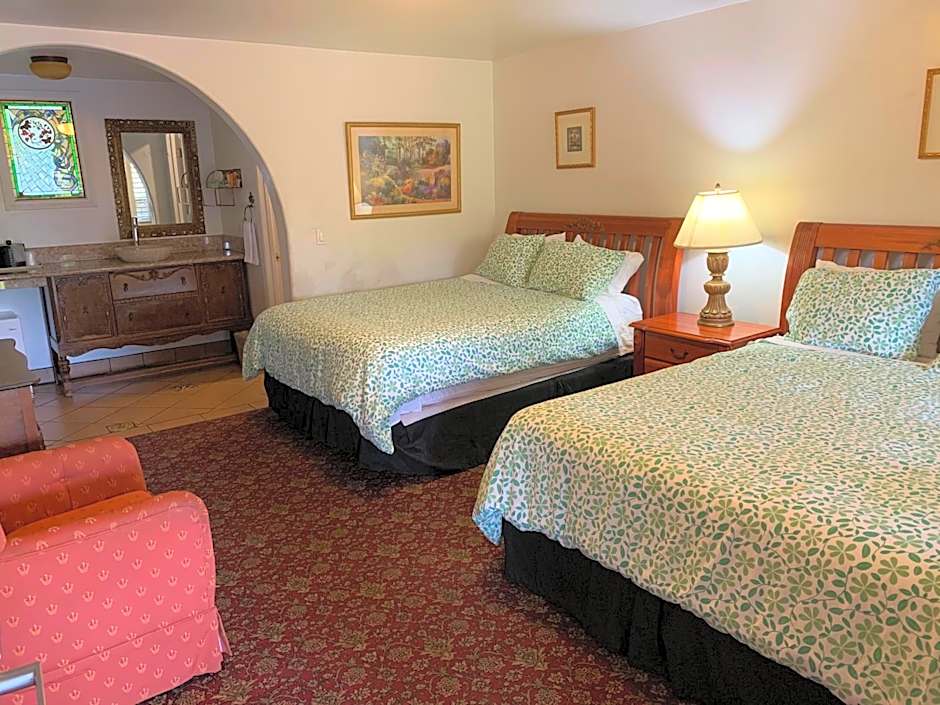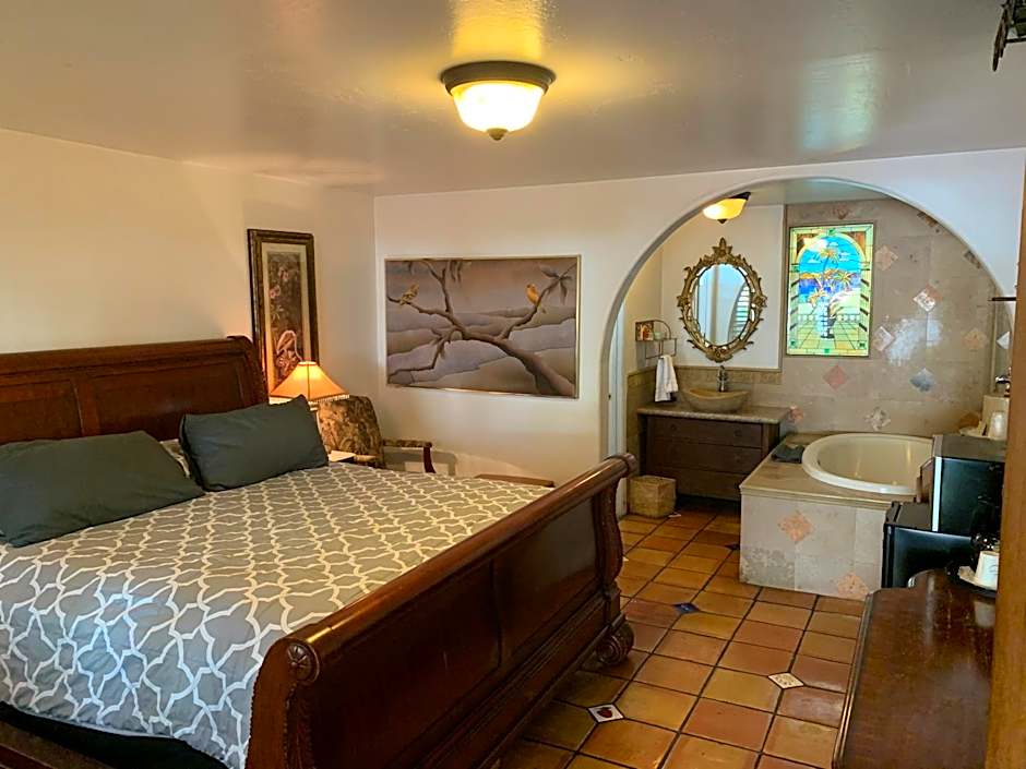 Featuring a private terrace, this room is also furnished in Victorian antiques and stain glass windows. The room offers cable TV and an private bathroom with granite counter tops and a unique stone sink.